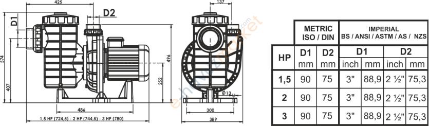 3 hp 380 Volt Ön Filtre Sepetli Havuz Pompa